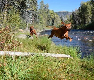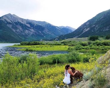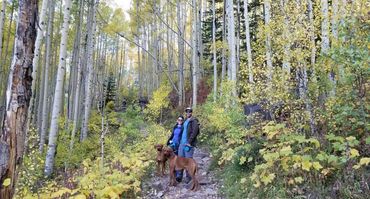 Chili and Bravo exploring Maroon Bells in Aspen, CO.